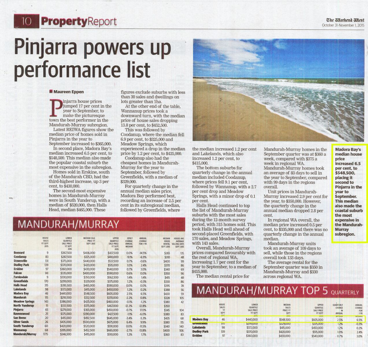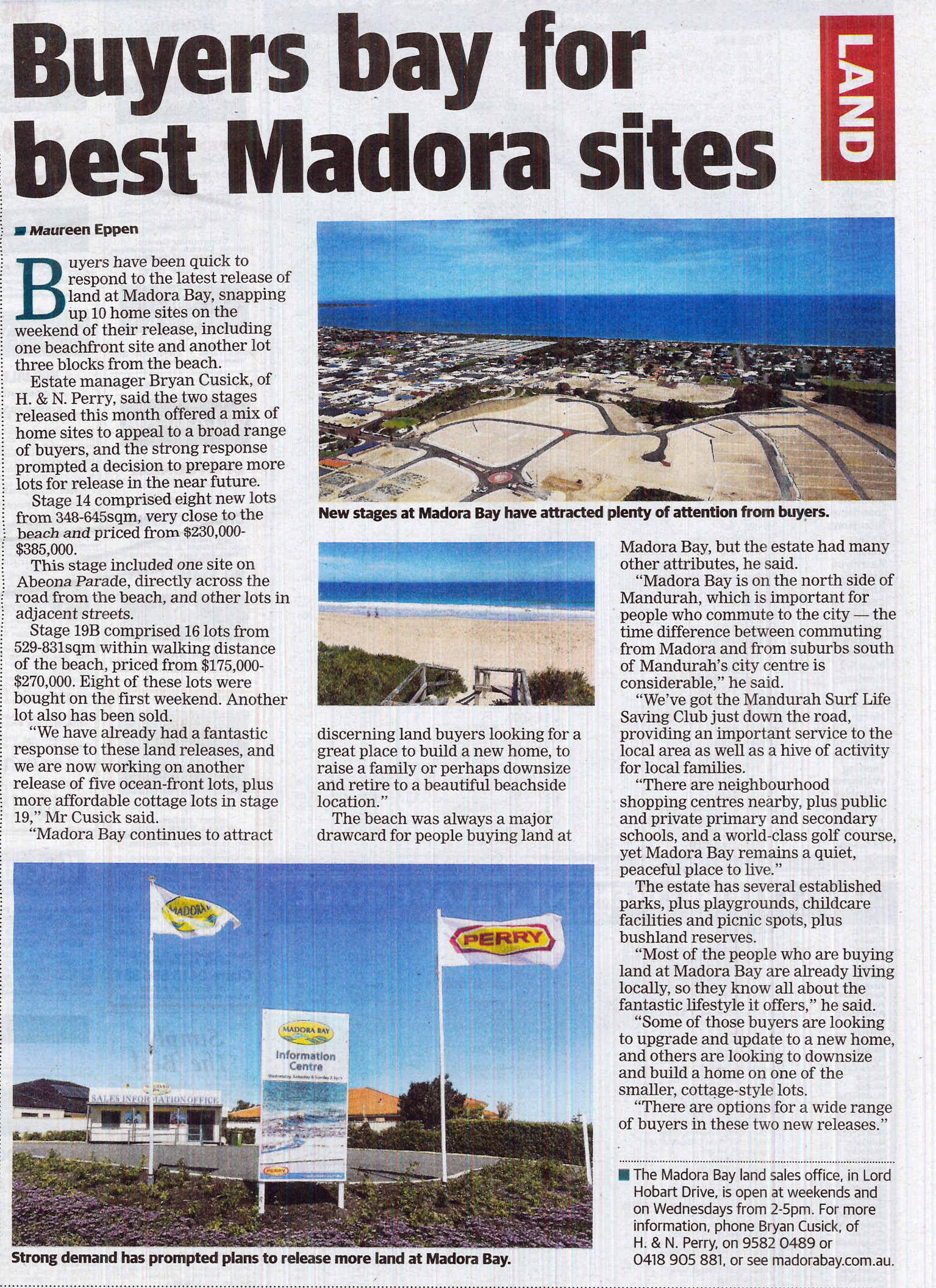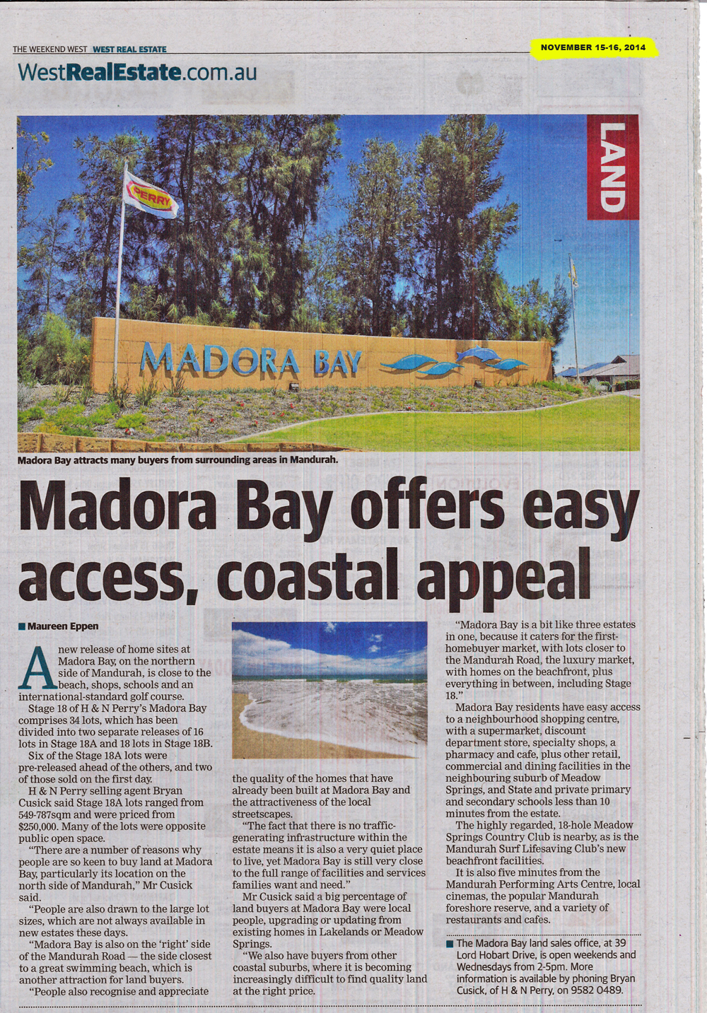 January 2014 - West Australian.pdf Jun 2013 - Mandurah Mail article.pdf April 2013 - Coastal Times.pdf March 2013-The West.pdf March 2013-Sunday Times.pdf February 2013 - Mandurah Mail Article.pdf November 2012 -West Australian Madora Bay Article.pdf November 2012 - Mandurah Mail Madora Bay Article.pdf July 2012-Coastal Times_Mandurah's Wealthy Suburbs.pdf Nov 2011-West Aust_Mandurah.pdf Aug 2010-West Aust_Madora Bay.pdf